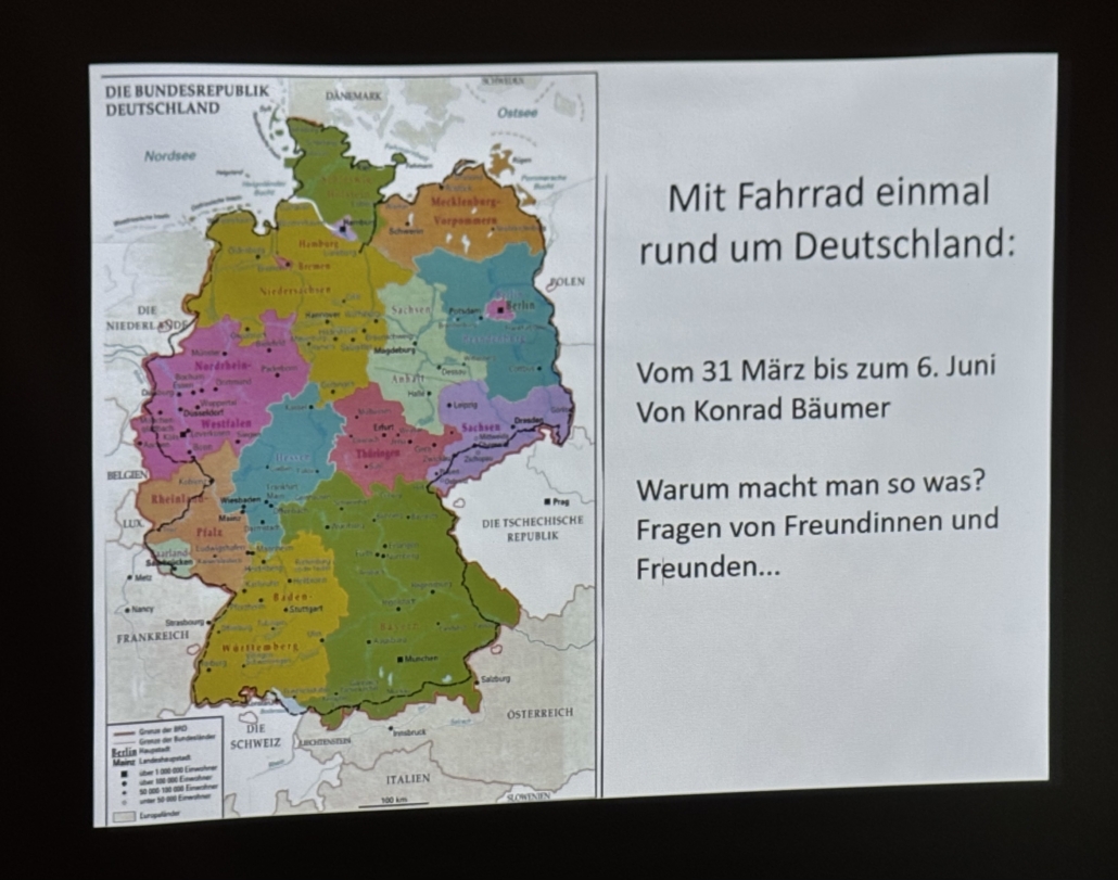 Nach dem offiziellen Teil berichtete Konrad Bäumer über seine Erlebnisse auf seiner Reise „Mit dem Rad rund um Deutschland“.