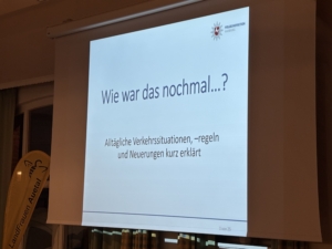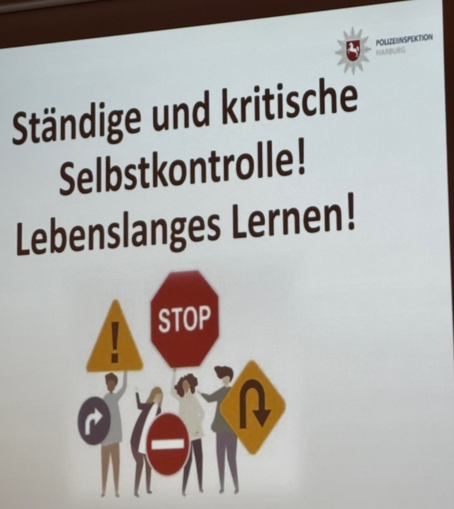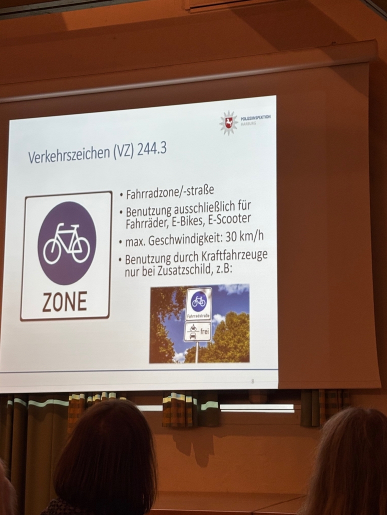 Der Verkehrssicherheitsbeauftragte der Polizei im Landkreis Harburg, Herr Dirk Poppinga, frischte für und mit uns unser Wissen über Altbekanntes aus dem Straßenverkehr auf und hatte es für uns frisch aufgewärmt. Der Saal im Geidenhof war recht gut gefüllt, trotz Schneetreibens draußen. Nicht so wenige Männer waren auch der Einladung unseres Vereins gefolgt und hatten sich zu uns Frauen getraut. Alle waren wir bereit, unser Wissen zu testen, Vergessenes aufzufrischen und Neues zu lernen. Wie ist das noch mit den Fahrradstreifen, den Zeichen vor den Bahnübergängen, wo darf man parken und wo sollte man es besser unterlassen? Wir lernten: Es ist immer eine gute Idee, sehr genau auf die Verkehrsschilder zu achten! Steht das Schild für sich alleine oder gibt es noch einen Zusatz, den es zu beachten gilt? Die vorgesehenen 90 Minuten reichten nicht; es wurde viel gefragt, erklärt und gelacht. Sehr anschaulich wurden diverse Situationen erklärt. Im Landkreis Harburg geschehen nach den veröffentlichten Zahlen von 2024 täglich ca. 20 von der Polizei dokumentierte Unfälle, welch eine Zahl! Herr Poppinga vermittelte uns sehr eindringlich, wie wichtig rechtzeitiges Anzeigen von geplanten Aktionen am Steuer – beispielsweise das Setzen des Blinkers – im Straßenverkehr ist und natürlich partnerschaftliches Verhalten und respektvoller Umgang miteinander. Die Vision Zero ist vielleicht eine Utopie, zum Glück gibt es jedoch Menschen wie Dirk Poppinga, die seit vielen Jahren Zeit, Kraft und Herzblut in den Unterricht und die Aufklärung zur Verkehrssicherheit stecken. Wir alle dankten Herrn Poppinga sehr für einen kurzweiligen, lehrreichen und unterhaltsamen Abend! Die Spende in Höhe von 200 € aus unserem Bienchen geht an die Verkehrswacht Harburg-Land e.V.! (Marion M.)