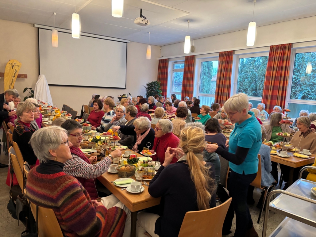 Die gelungene Auftaktveranstaltung im neuen LandFrauen-Jahr begann mit einem opulenten Frühstück. Jeweils zwei LandFrauen genossen den Augen- und Magen- Schmaus der Köstlichkeiten auf einer Etagere.