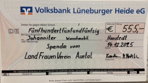 Der LandFrauenverein Auetal hatte mit dem Marktcafé beim Herbstmarkt in Hanstedt und beim diesjährigen Staudenmarkt einen Überschuss erwirtschaftet. Davon spendete der Verein jetzt 555 Euro an das Wunschmobil des DRK Lüneburg.